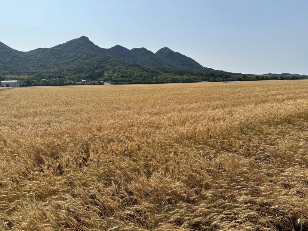 毎年この時期になると、山口県の小麦畑を訪れています。弊社のたこ焼き粉に使用している小麦は、すべてこの土地で育まれたもの。