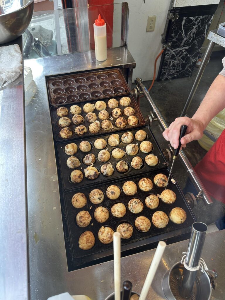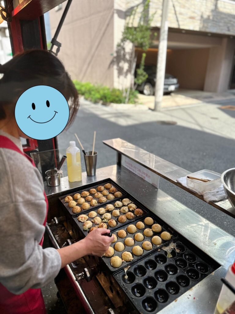 併せて販売研修も実施し、実際にお客様の前でたこ焼きを焼いて提供する実践経験を積んでいただきます。